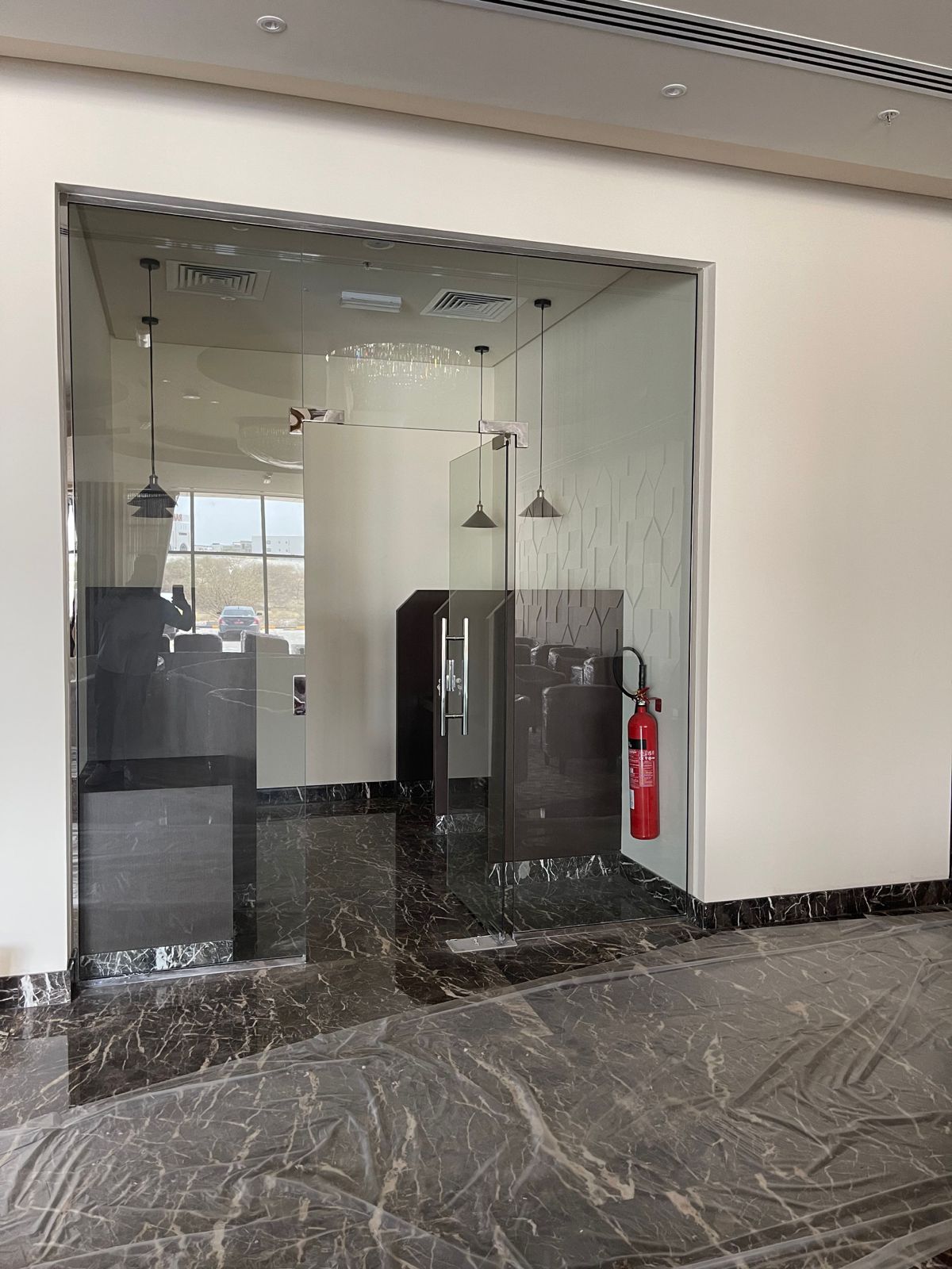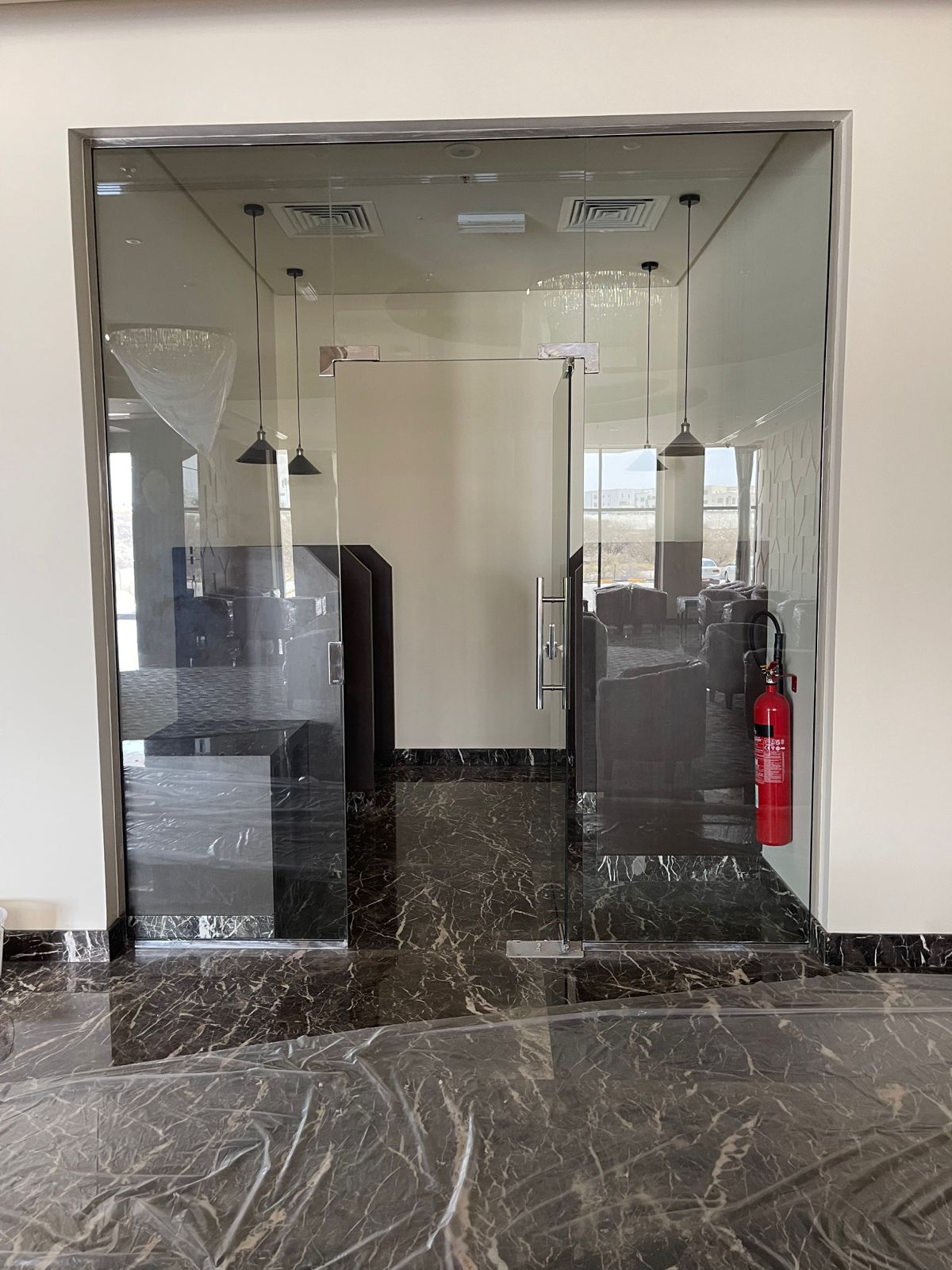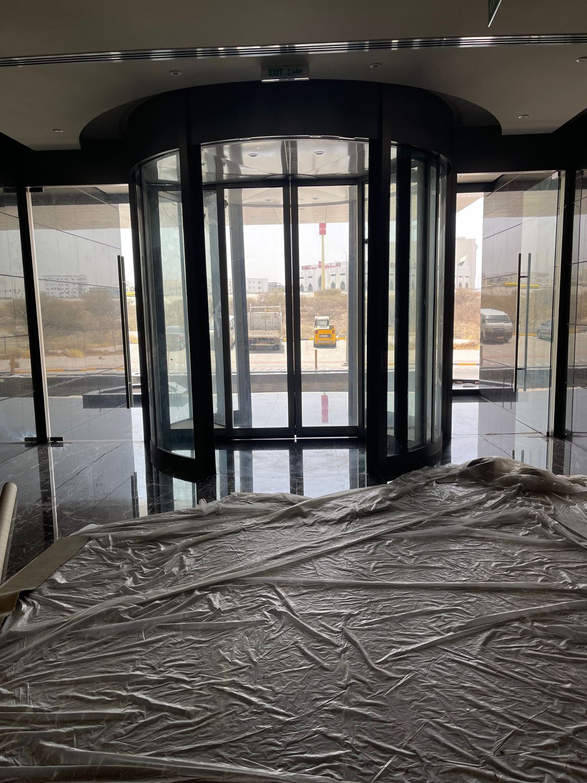 الأبواب الدوّارة، الدرابزين، واجهات زجاجية، مرايا، فواصل الحمام.