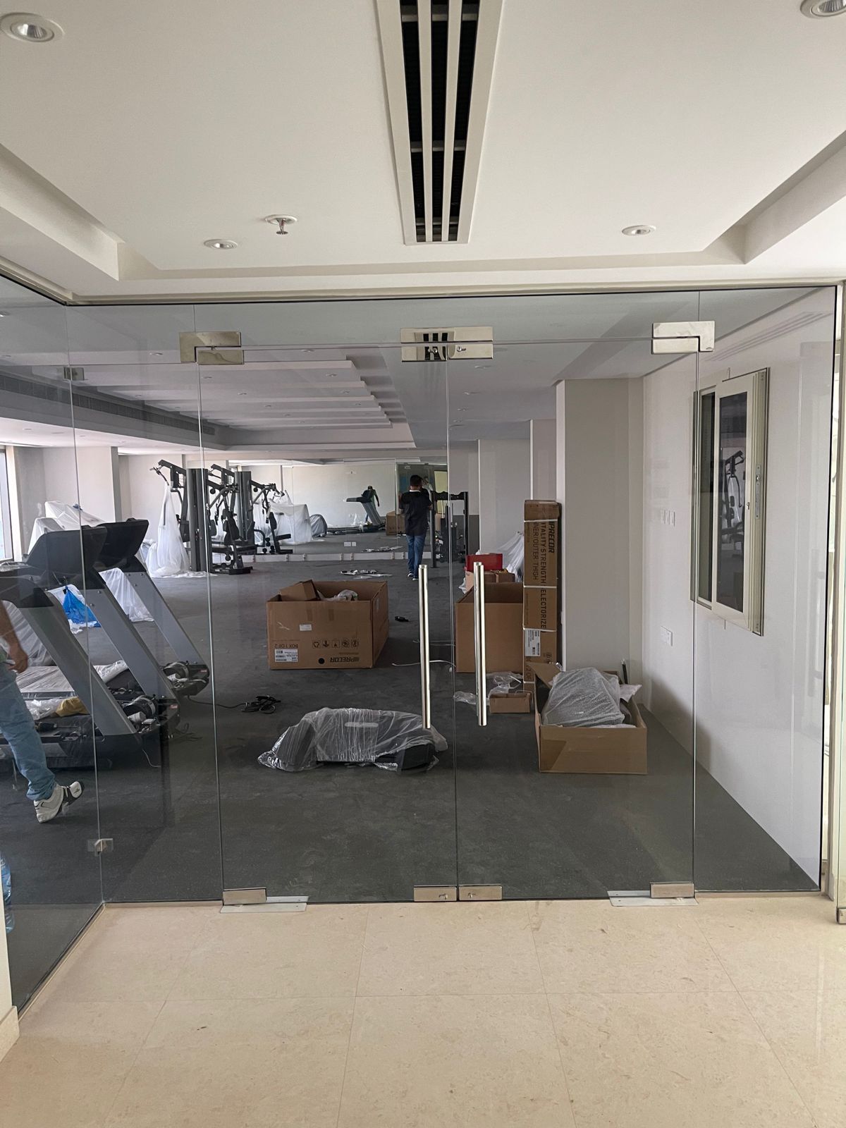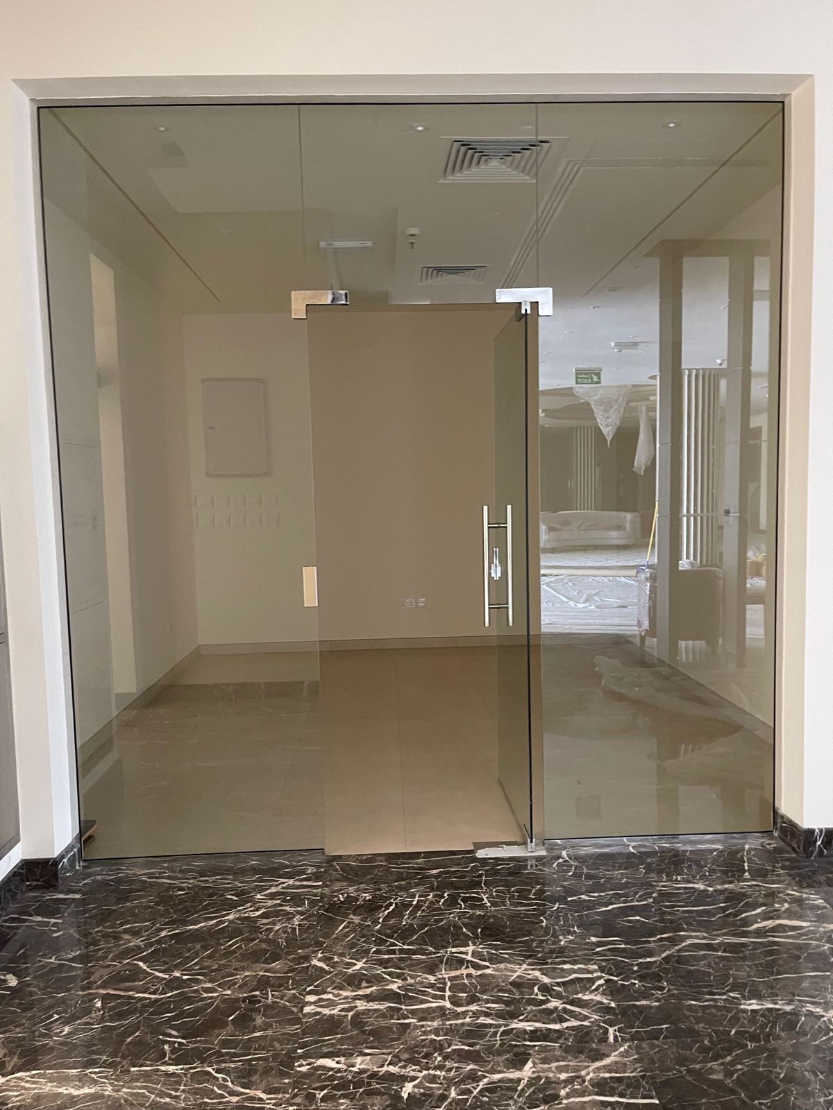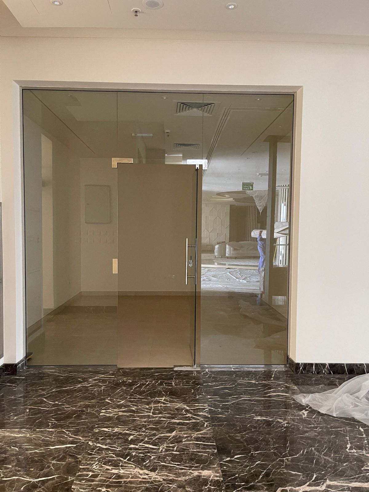 الأبواب الدوّارة، الدرابزين، واجهات زجاجية، مرايا، فواصل الحمام.